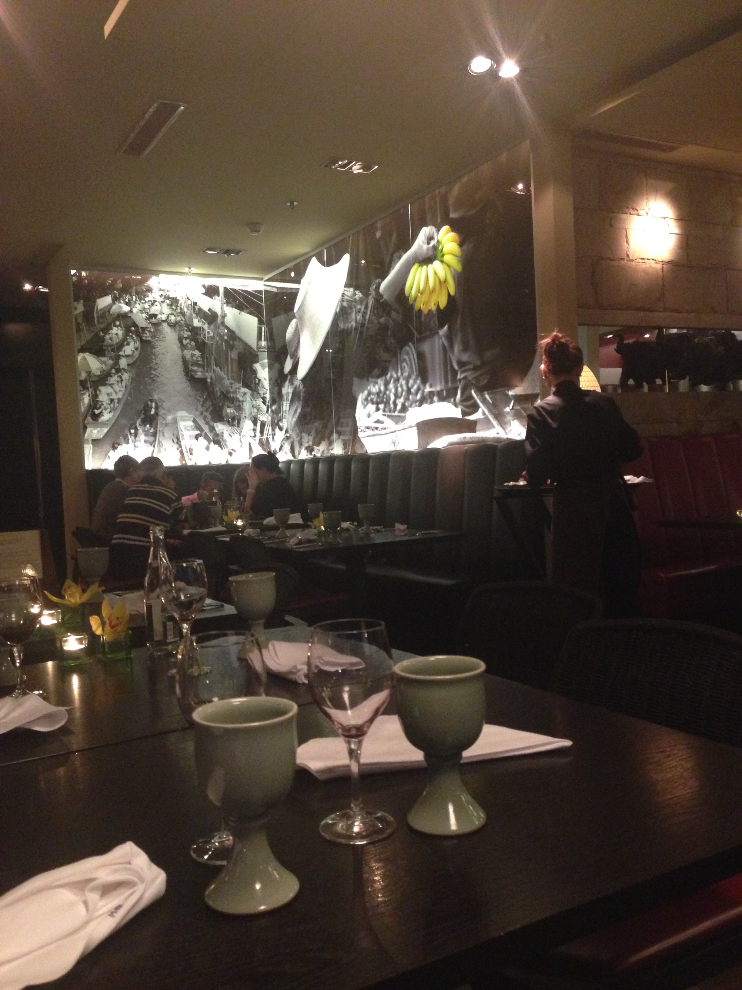 Sollte das Label „Hotel-Restaurant“ tatsächlich jemanden von einem Besuch im White Elephant abhalten, dann kann hier Entwarnung gegeben werden: Das Restaurant verfügt über einen eigenen Eingang, man muss also nicht die Hotellobby durchqueren um an seinen Tisch zu gelangen, und auch sonst bemerkt man kaum, dass man sich im Marriott befindet.