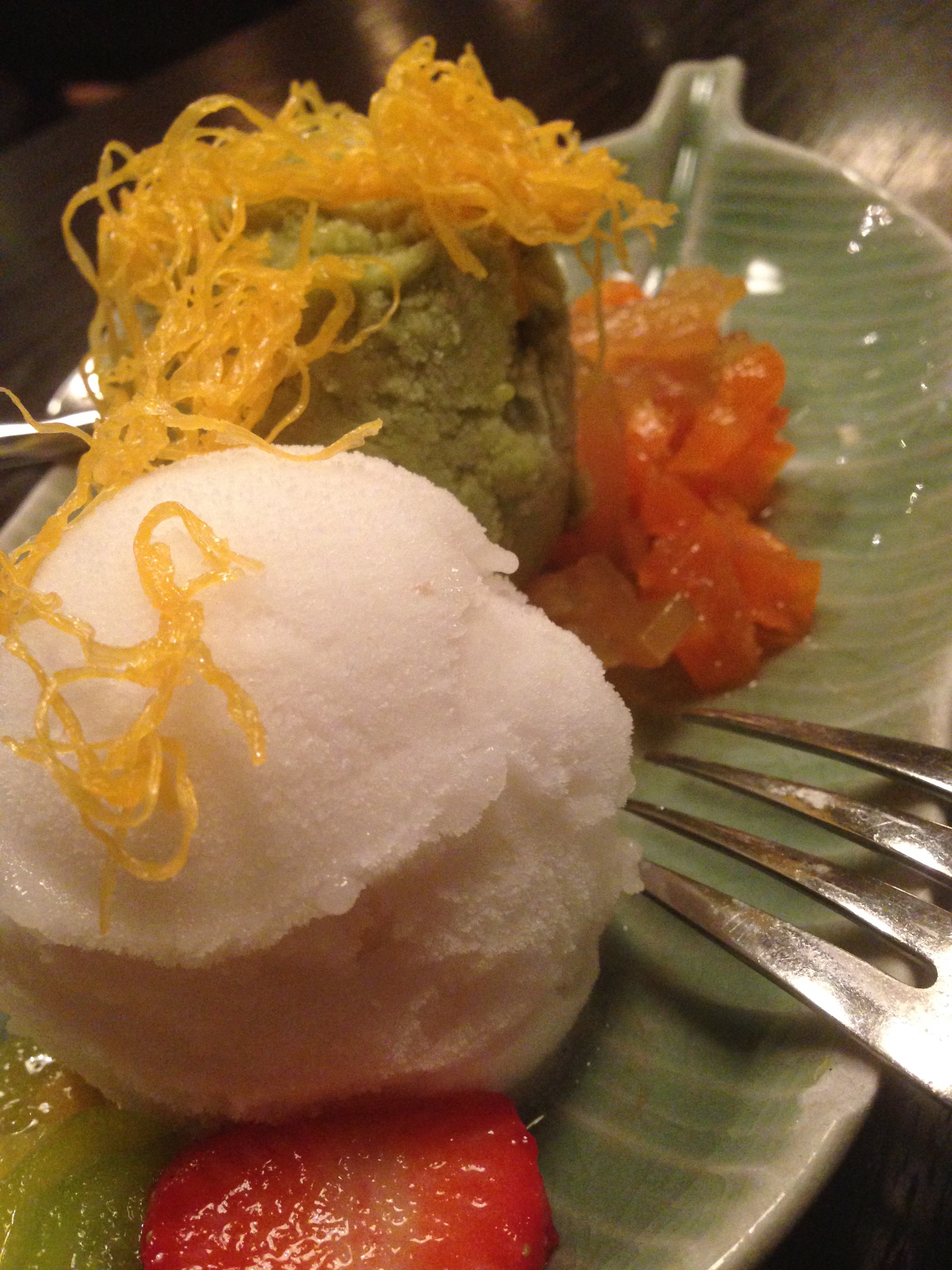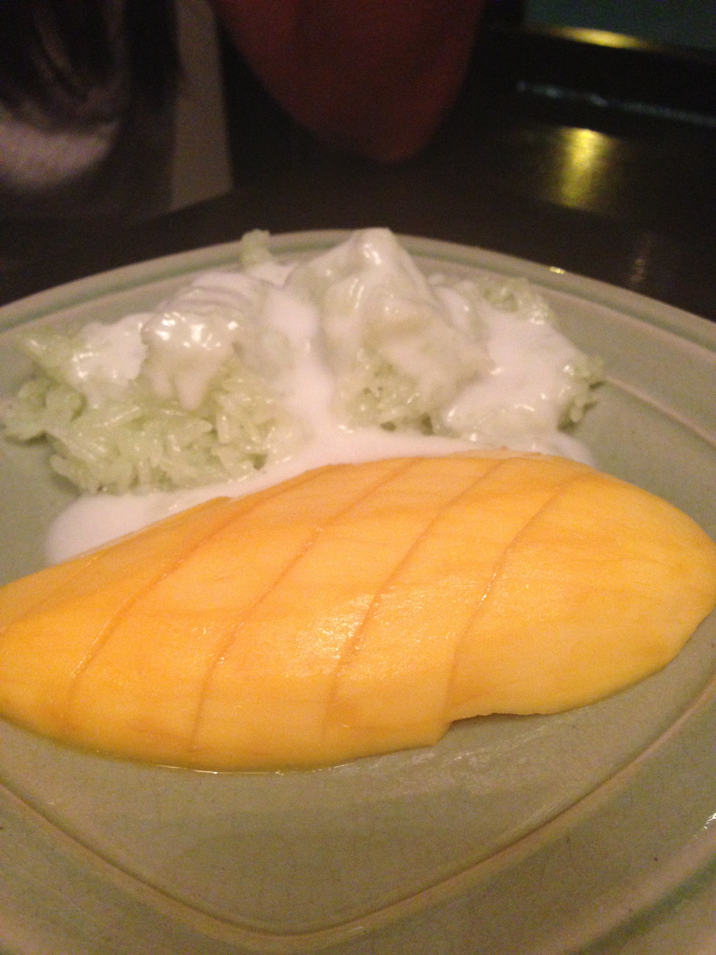 Den Curry-Fisch fanden wir hervorragend. Der Fisch war genau richtig auf den Punkt gegart und die Curry-Sauce war subtil und passte perfekt dazu. Besonders gefallen hat uns auch der Mango-Sticky-Reis. Die Mango war perfekt reif und der Reis war „al-dente“ und hat ganz leicht salzig geschmeckt.